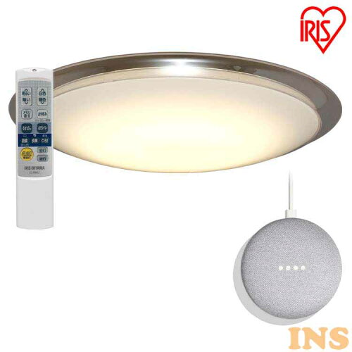 スマートスピーカー 照明 シーリングライト 12畳 google home mini GA00210-JP チョーク+LEDシーリングライト送料無料 調光 調色 LED スピーカー LED照明 天井照明 シーリング おしゃれ 明るい リモコン付 子供部屋 寝室 リビング Amazon Echo アイリスオーヤマ