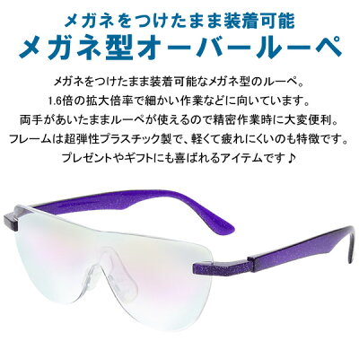 【キャッシュレス 5%ポイント還元 対象店舗】 【メガネをかけたまま装着可能!】メガネ型ルーペ 拡大鏡 1.6倍 ブルーライトカット プラスチックフレーム 軽量 mo-005メガネをつけたまま装着可能なメガネ型のルーペ。
