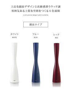 ウッド調タイプ: サイズ:幅17×奥行き17×高さ80cm 製品重量:約1.8kg 材質:カバー:ABS、アロマトレー:PP、水タンク:AS 電源:AC 100V 50/60Hz 定格消費電力:弱:18W、中:21W、強:23W、おやすみモード:16W 1時間の電気代:約0.62円 加湿性能:弱:120-200ml/h、中:250-300ml/h、強:300-350ml/h、おやすみモード:50-120ml/h 連続加湿時間:20時間(弱)〜7時間(強)、5時間(おやすみモード) タンク容量:約2.5L 適用畳数/床面積:木造和室6畳、プレハブ洋室10畳 機能:オフタイマー機能/2時間給水必要時自動電源オフ機能加湿量切替/弱・中・強・おやすみモードアロマ対応(アロマパッド付属)抗菌・除菌・消臭効果(抗菌カチオンAG+カートリッジ付属) コード長:約1.5m 備考:1年間保証エアフィルター付きリモコン付属アロマケース付属※アロマオイルは付いておりません。
